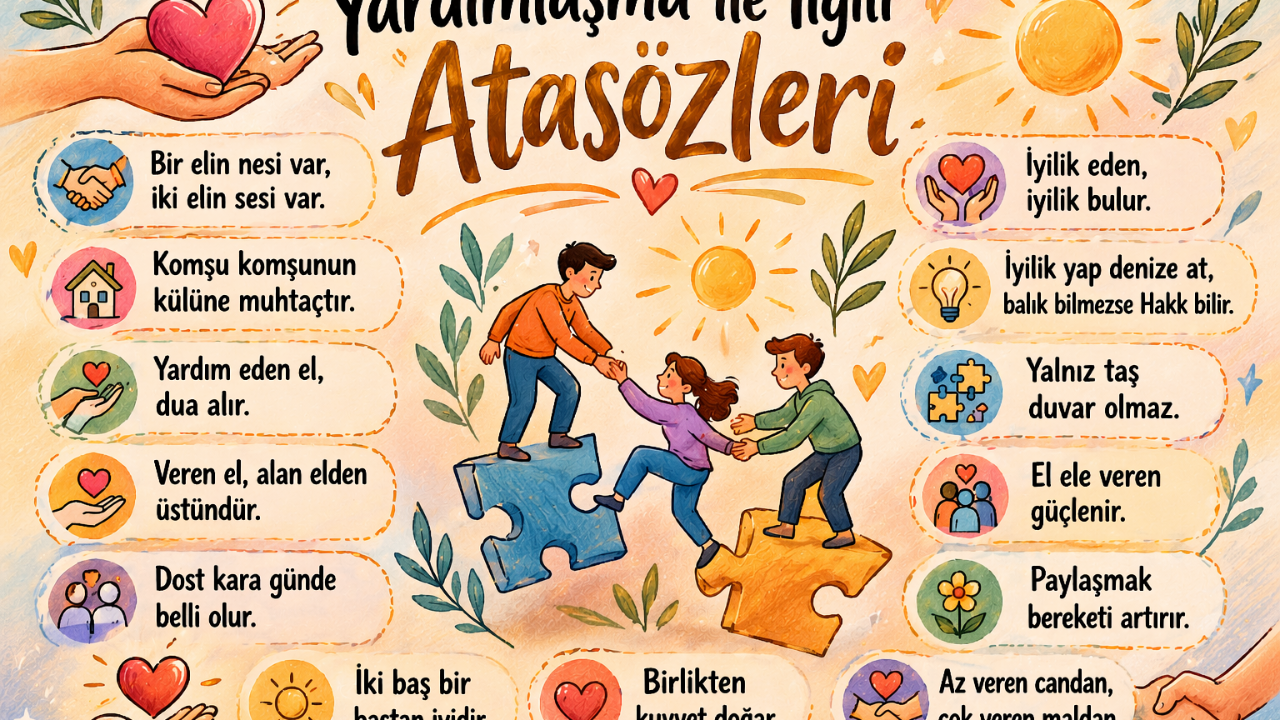 Yardımlaşma, toplumların ayakta kalmasını sağlayan en önemli değerlerden biridir. İnsanlar arasındaki dayanışma, zor zamanlarda birlik olmayı ve güçlü kalmayı mümkün kılar. Türk kültüründe yardımlaşma, sadece bir davranış değil; aynı zamanda bir yaşam biçimi olarak görülmüş ve bu değer atasözleriyle nesilden nesile aktarılmıştır. “Bir elin nesi var, iki elin sesi var” gibi atasözleri, birlikte hareket etmenin gücünü açıkça ifade eder. Yardımlaşma ile ilgili atasözleri, paylaşmanın önemini, birlik olmanın getirdiği gücü ve insanların birbirine destek olması gerektiğini anlatır. Bu sözler, hem bireysel hem de toplumsal hayatta rehber niteliği taşır. Günümüzde de geçerliliğini koruyan bu değerler, daha güçlü ve sağlıklı bir toplumun temelini oluşturur. Yardımlaşma ile İlgili Atasözleri- Bir elin nesi var, iki elin sesi var.